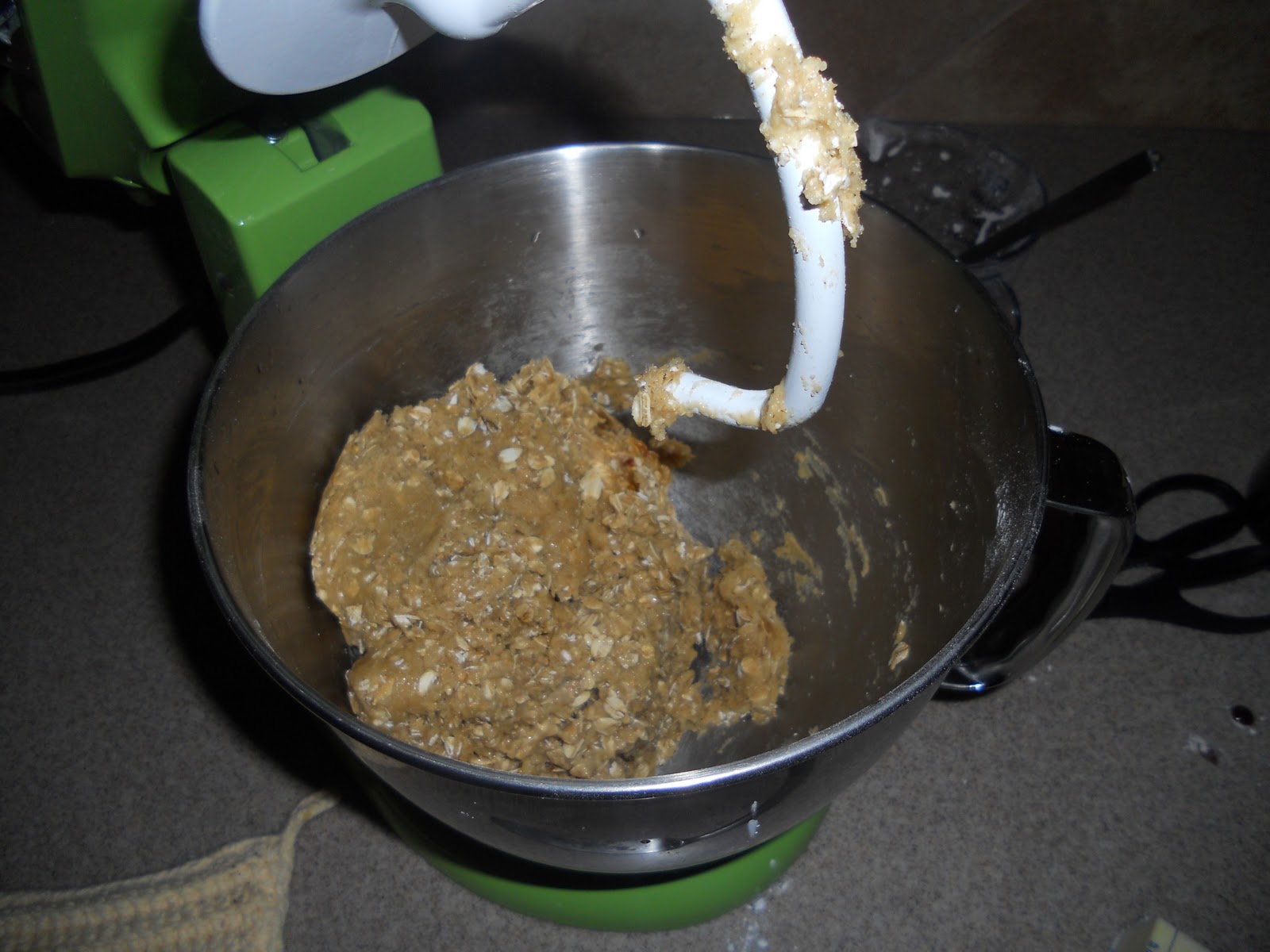 When using your KitchenAid you will want to use then put on your dough hook to add in the oats and chocolate chips.